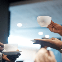 Le moment où les meilleures connexions se créent. Café, échanges, numéros échangés.
